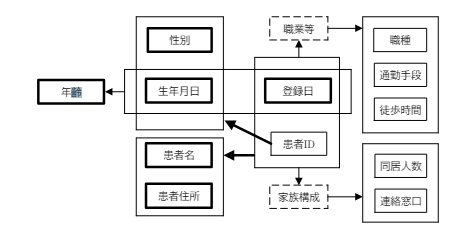 診療・診断:{患者 ID,診断日}