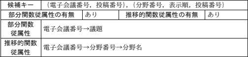 電子会議(電子会議番号,議題,分野番号,表示順, 作成者ユーザ ID)